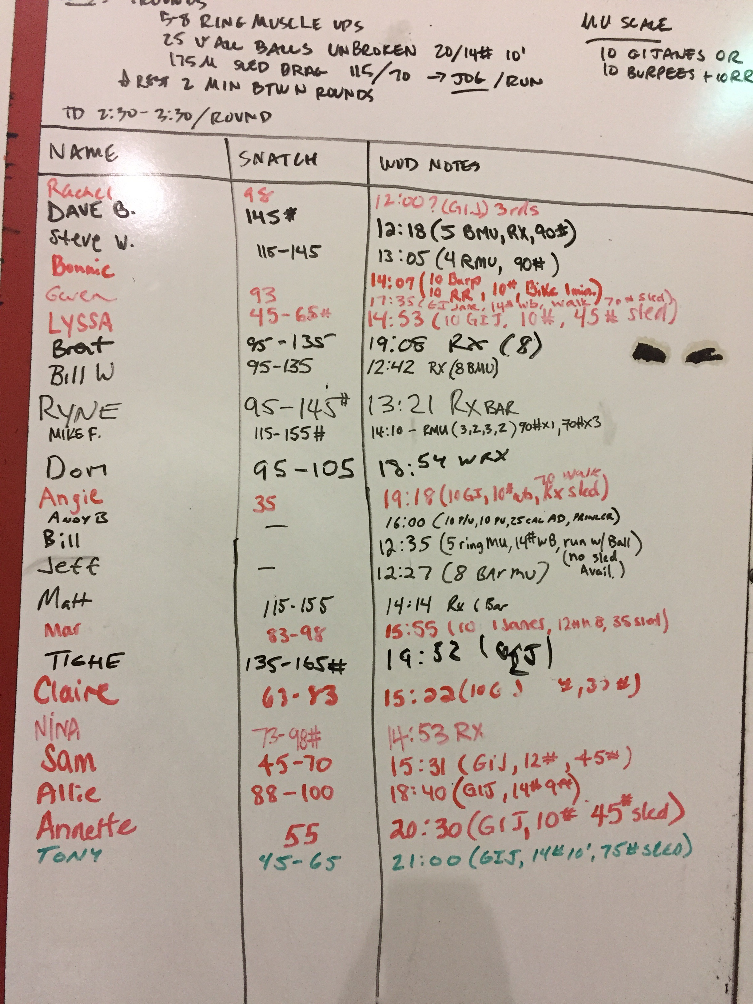 WOD Notes: TD = 20-30 min. You may reduce the # of strict pu to 3 each round or do 5 ring rows (make them difficult). Cleans may be power or squat. Use around 65% of power clean max.